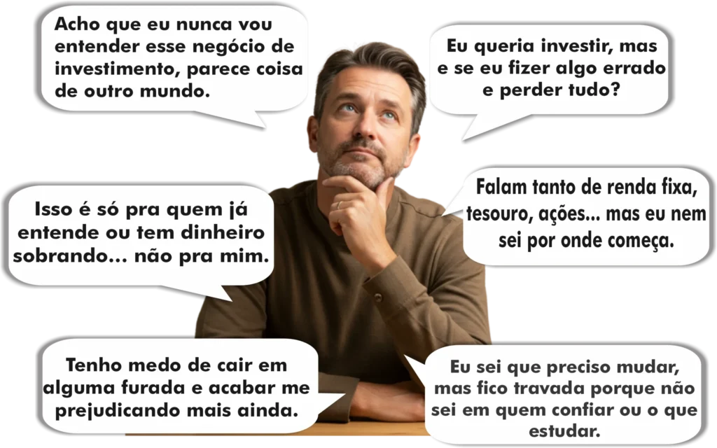 Você passa a vida inteira achando que investir é coisa de rico, que é difícil, arriscado demais ou que você nunca vai entender esse mundo.