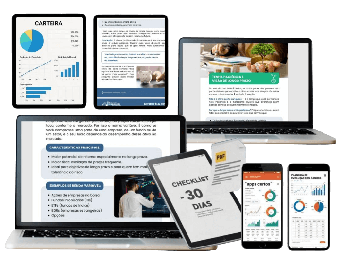 Vejo tudo que você vai receber para aprender o básico dos investimentos e conhecer formas reais de fazer seus dinheiro crescer